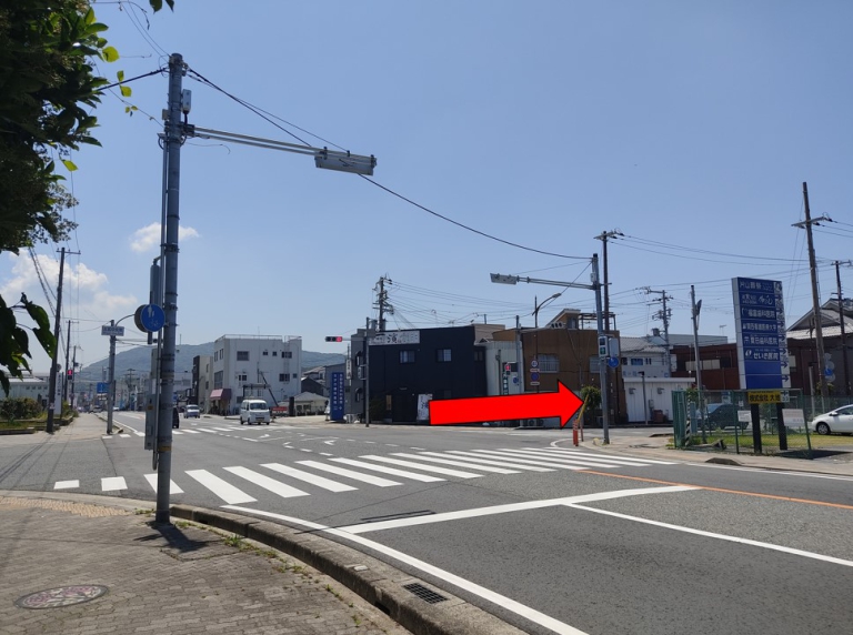 普通自動車サイズの方はこちらの道順をご利用ください。脇道からお越しになると道が細いために曲がり切れない場合がございますので、ご注意ください。